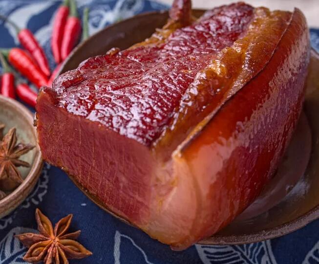 四川臘肉是一道美味可口的漢族名肴全國有名,屬于川菜系,熏好的臘肉,表里一致,煮熟切成片,透明發(fā)亮,色澤鮮艷,黃里透紅,吃起來(lái)味道醇香,肥不膩口,瘦不塞牙,不僅風(fēng)味獨特,而且具有開(kāi)胃、去寒、消食等功能。臘肉從鮮肉加工、制作到存放,肉質(zhì)不變,長(cháng)期保持香味,還有久放不壞的特點(diǎn)。此肉因系柏枝熏制,故夏季蚊蠅不爬,經(jīng)三伏而不變質(zhì),成為別具一格的地方風(fēng)味食品。